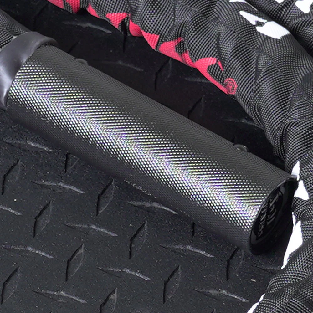This heavy-duty nylon battle rope has a durable nylon sleeve and capped ends to prevent fraying and extend the life of your rope! The bolts secure the grips in place and prevent excessive wear on the capped ends.